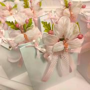 Nelle immagini puoi vedere un esempio di confezionamento personalizzato con ramo fiorito. Il confezionamento standard prevede un doppio fiocco in raso.