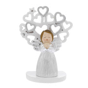 Angioletto argentato con mani giunte in preghiera e alberello della vita stilizzato a cuori.