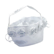 Borsetta in raso bianco e rose per confetti, petali e bomboniere