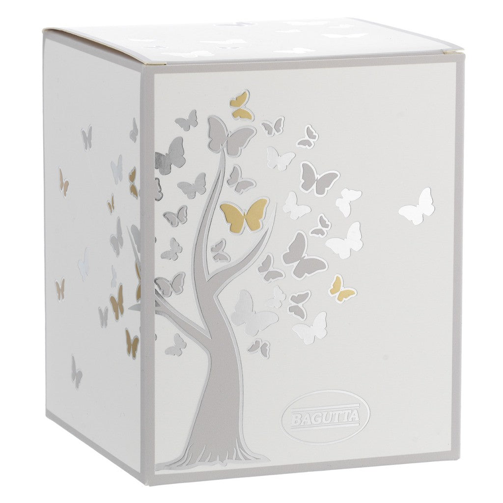 • Albero stilizzato con farfalle bianche e oro