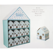 Casetta azzurra Baby con 24 scatoline portaconfetti per nascita e battesimo bimbo