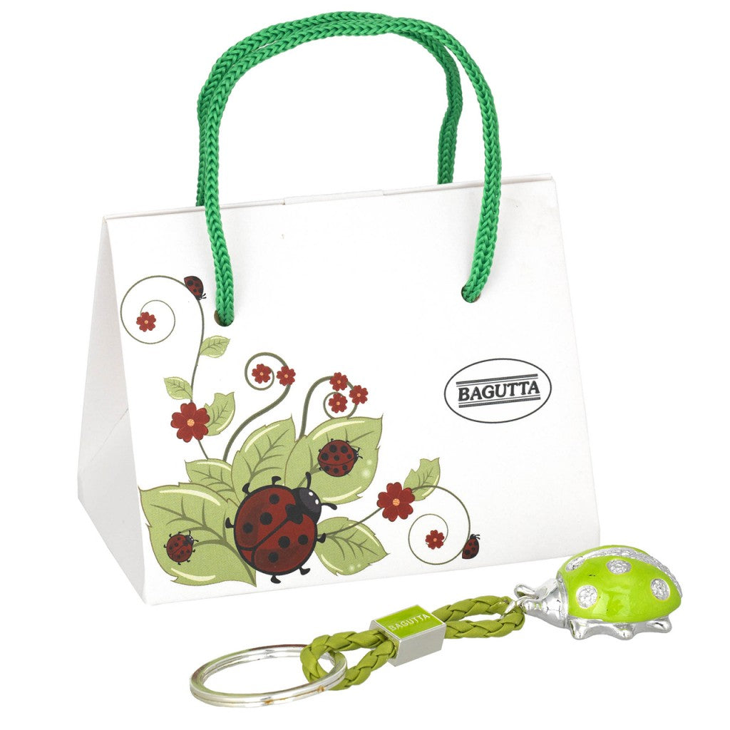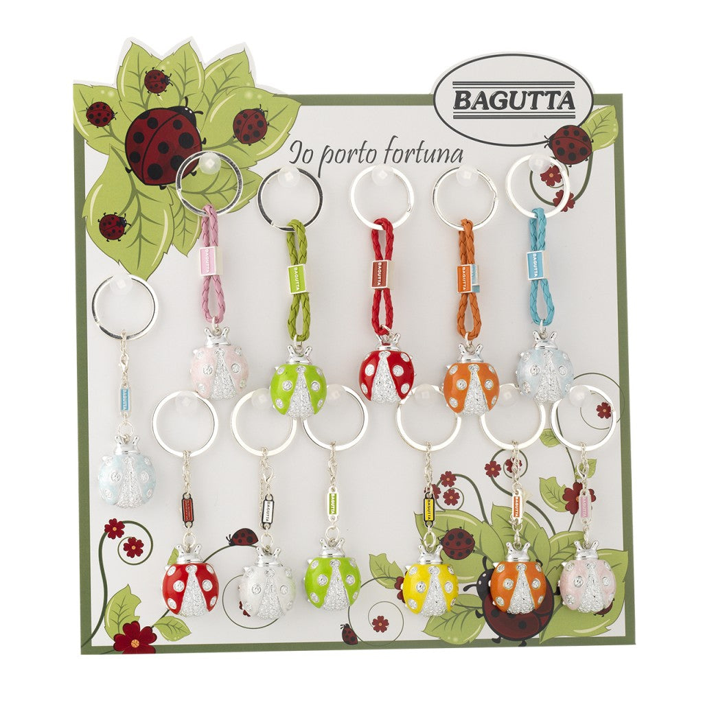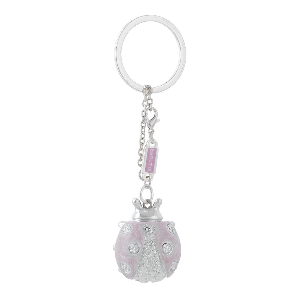 Portachiavi Bagutta con coccinella smaltata e argentato, impreziosita da luminosi strass.
