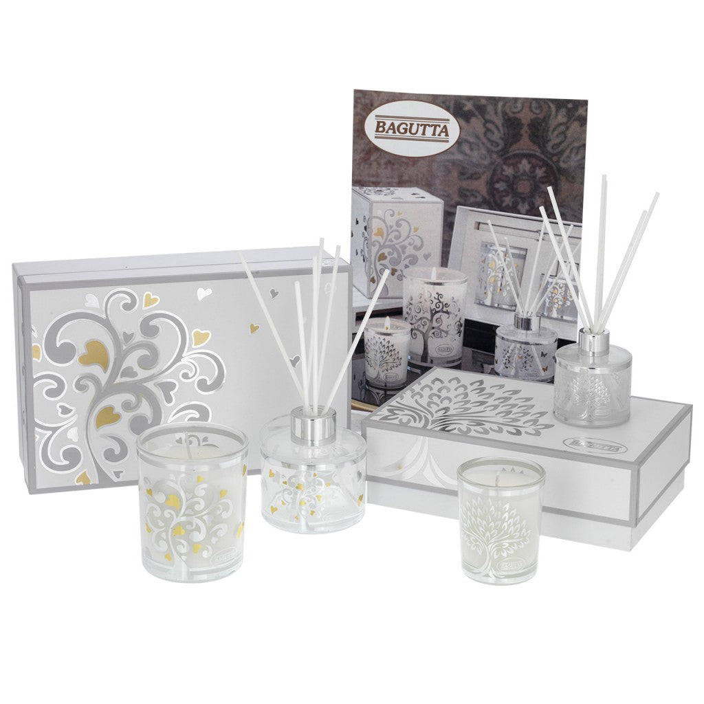 Cofanetto coordinato bianco con profumatore e candela aromatizzata