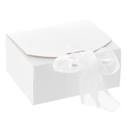 - Scatola o shopper decorati con nastri in doppio raso e fiocco.