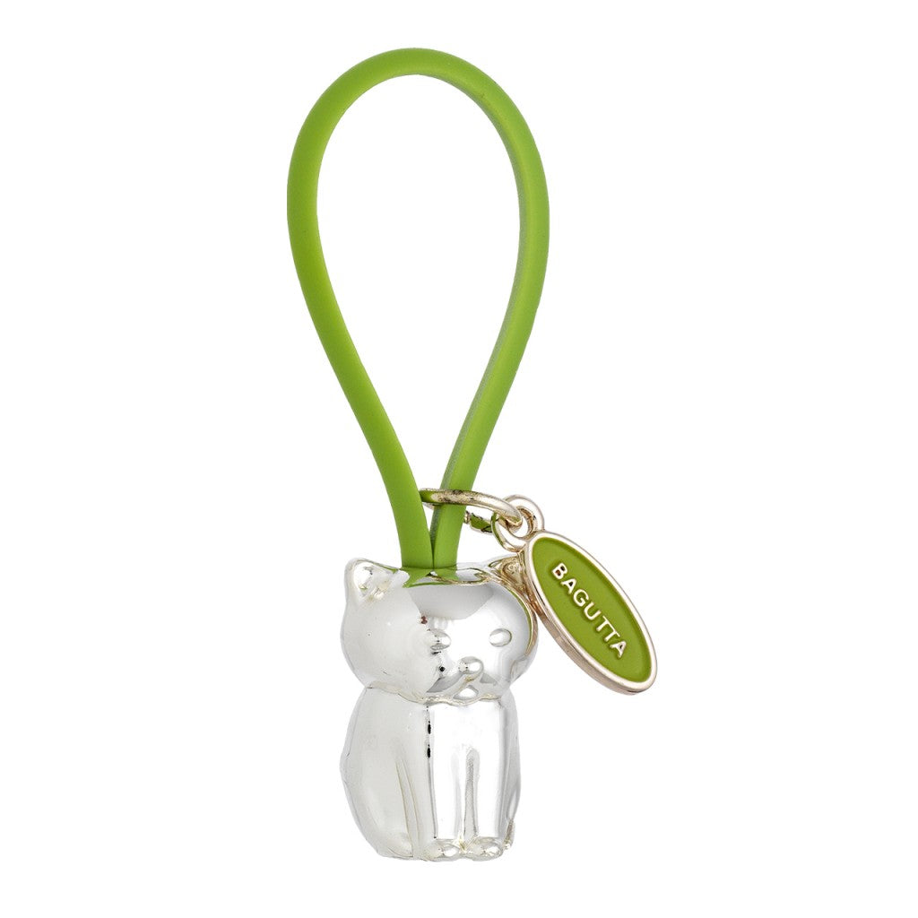 Portachiavi Bagutta con gatto argentato e cordoncino in silicone.