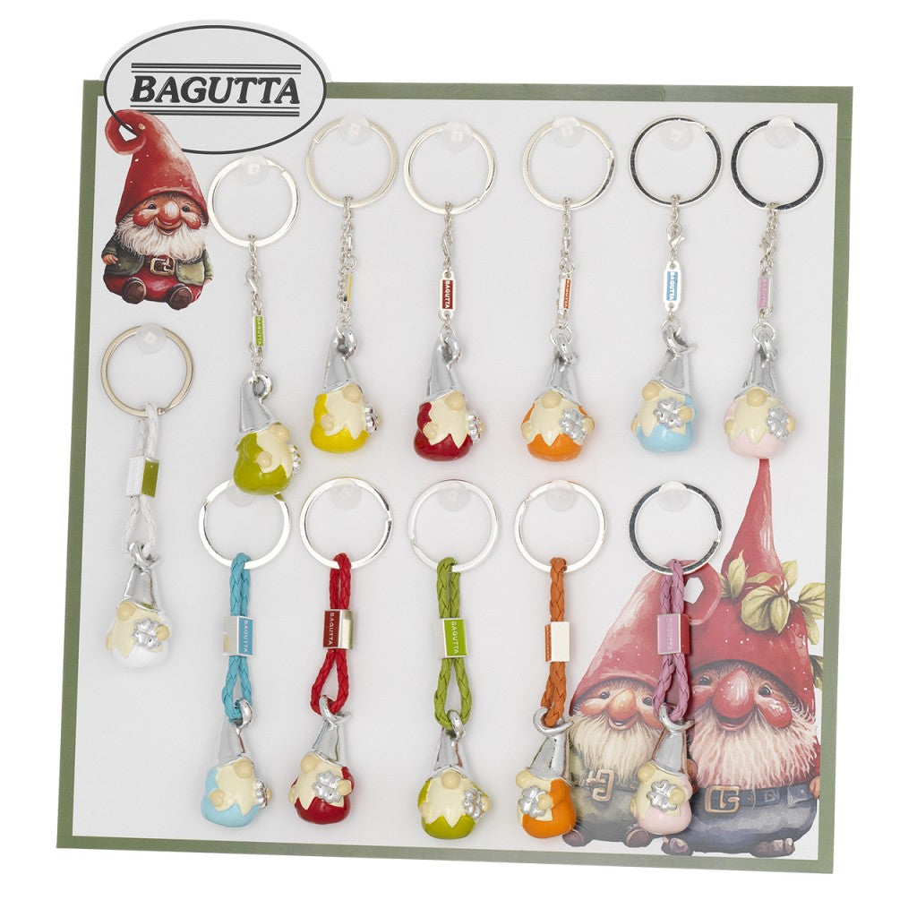 Portachiavi Bagutta con gnomo smaltato e argentato.
