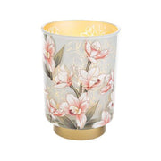 Lampada in vetro, con decorazione a fiori, con LED.