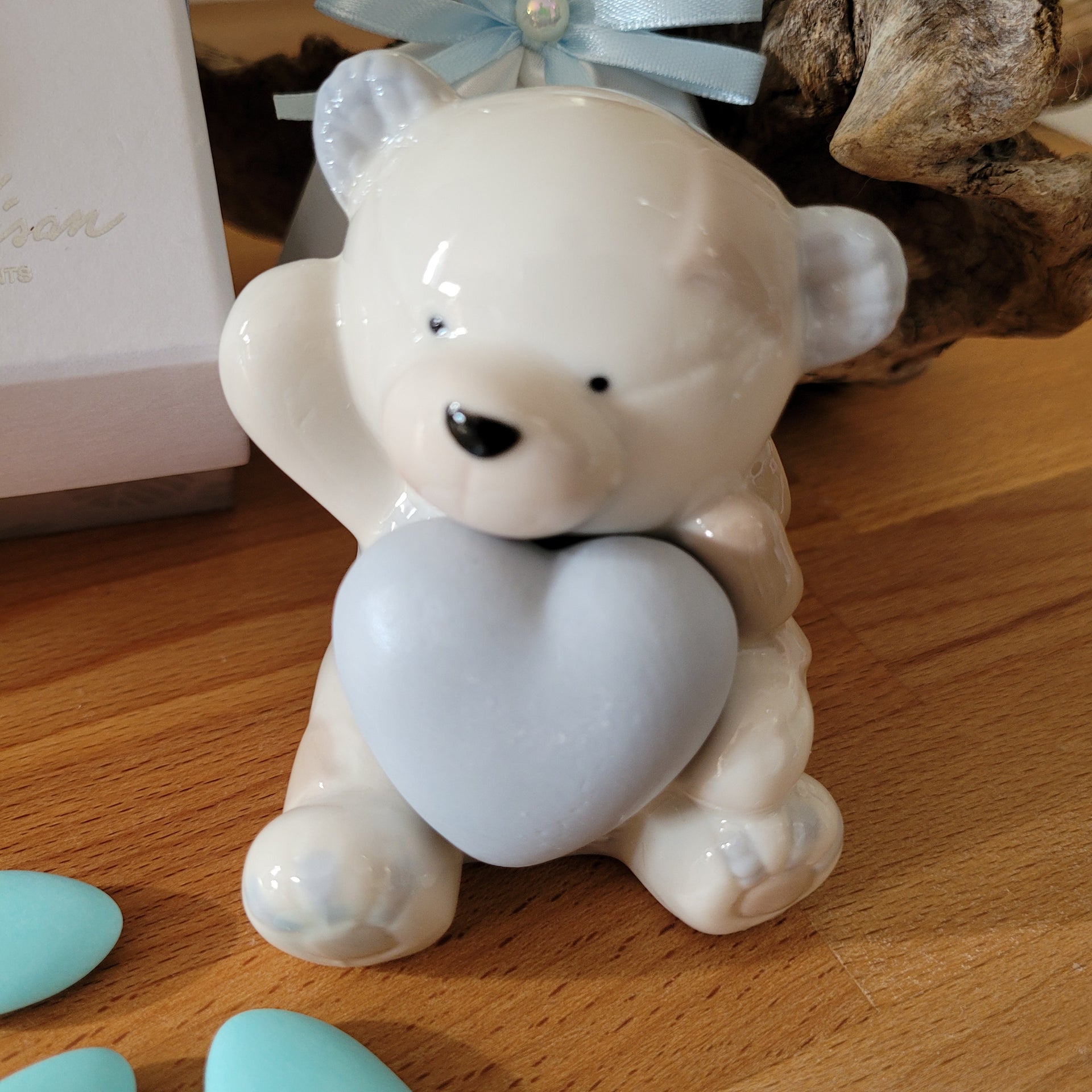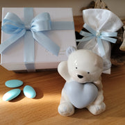 Orsetto con cuore in porcellana bianca e azzurra