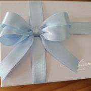 - Scatola o shopper decorati con nastri in doppio raso e fiocco.