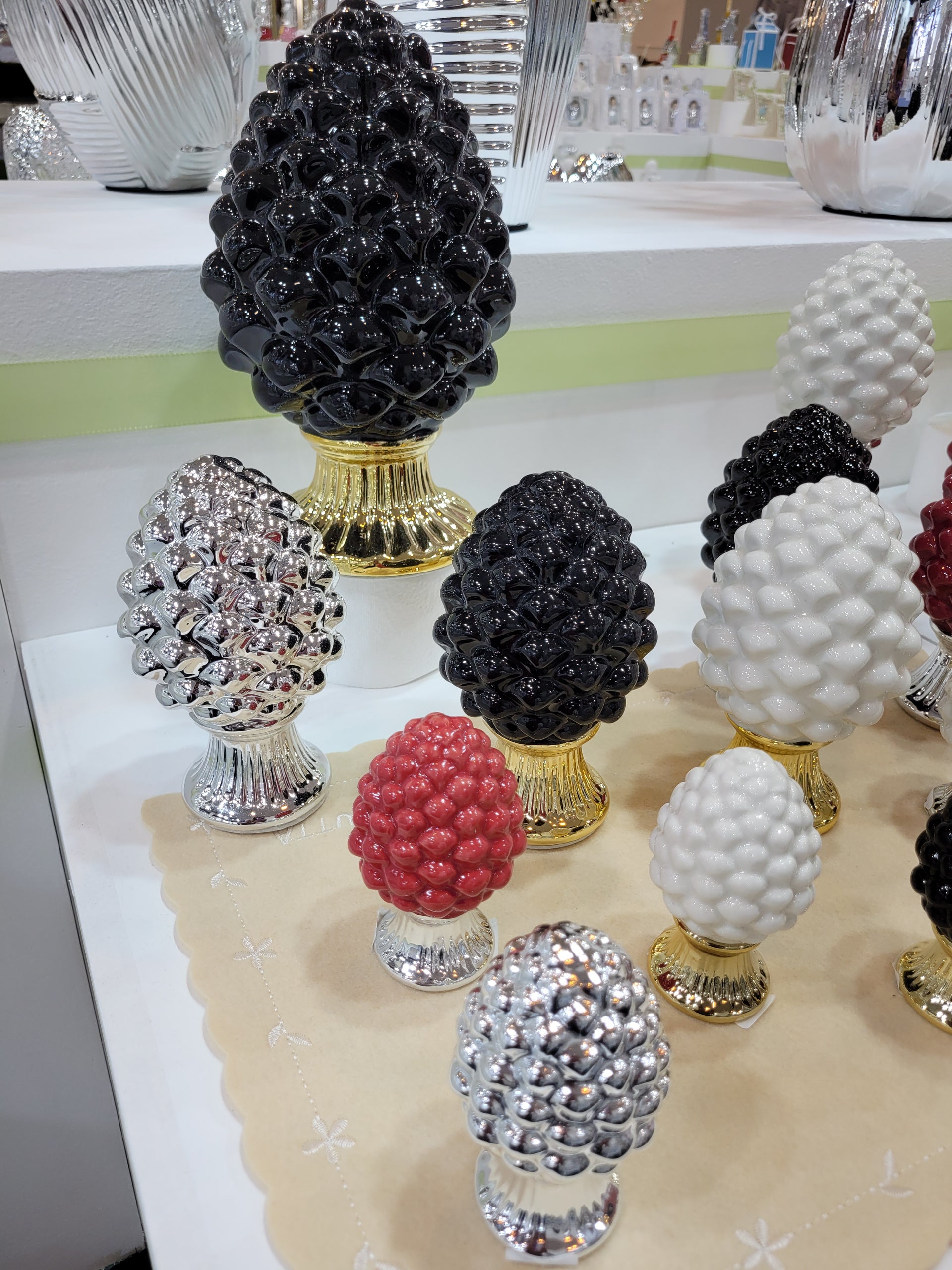 Eleganti pigne portafortuna Bagutta, disponibili in due misure e 6 colori.