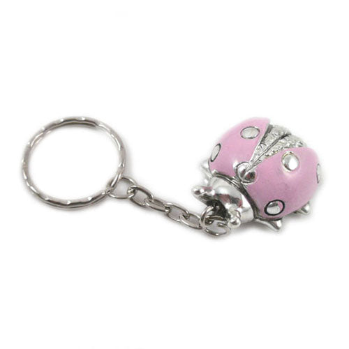 Portachiavi coccinella argentata e smalto rosa