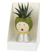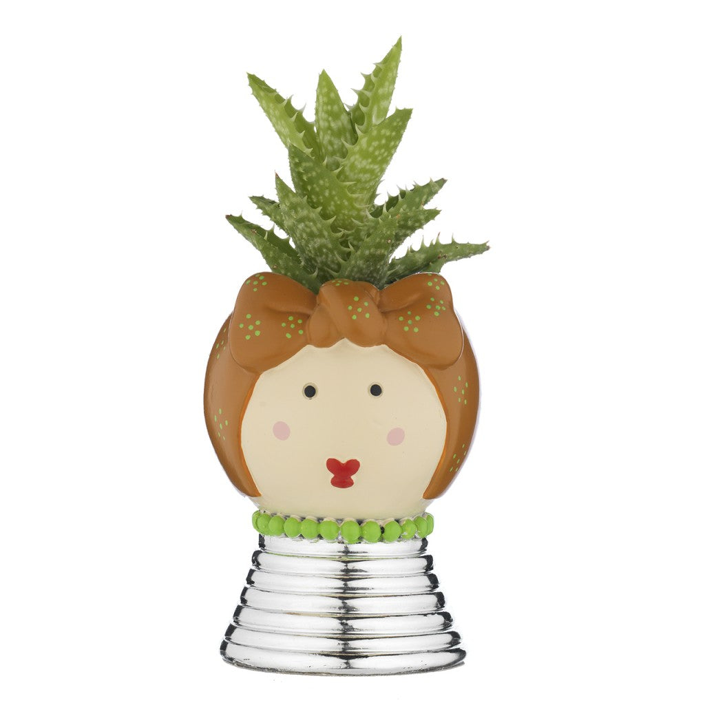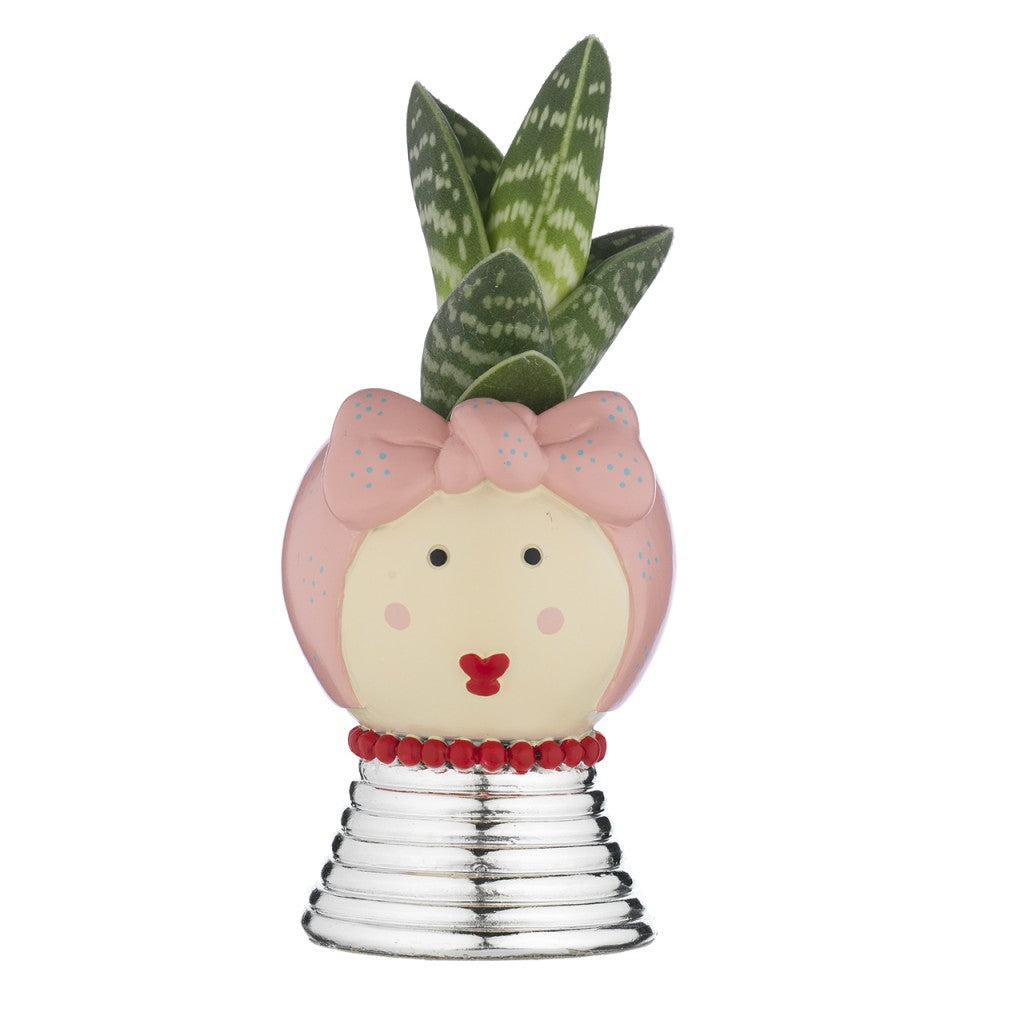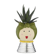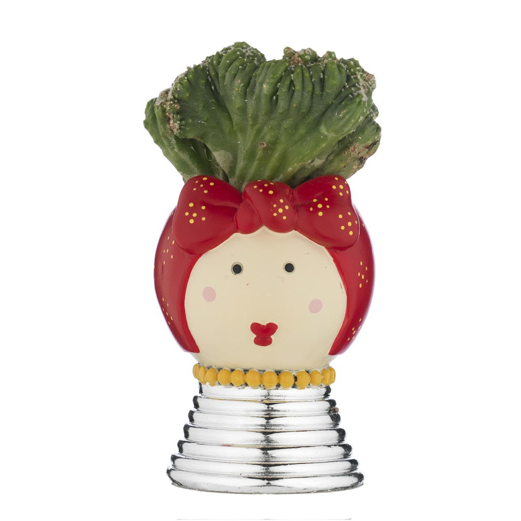 Portavaso Mama, base argentata e piantina grassa