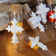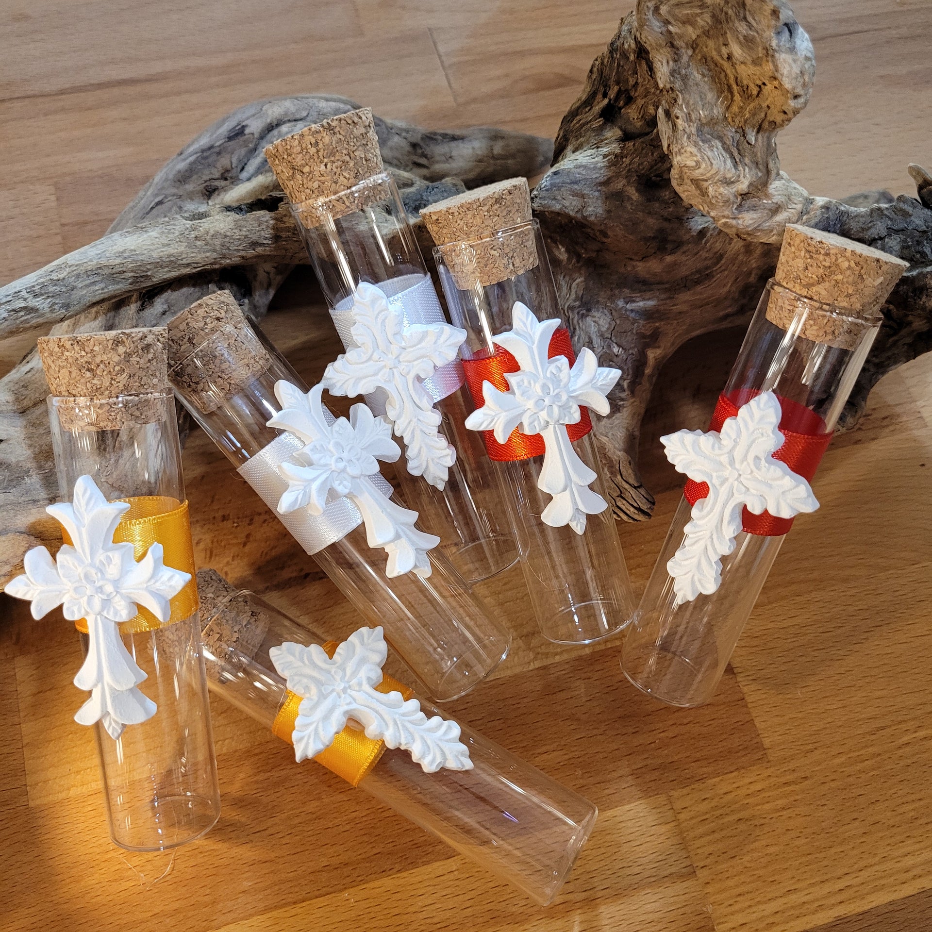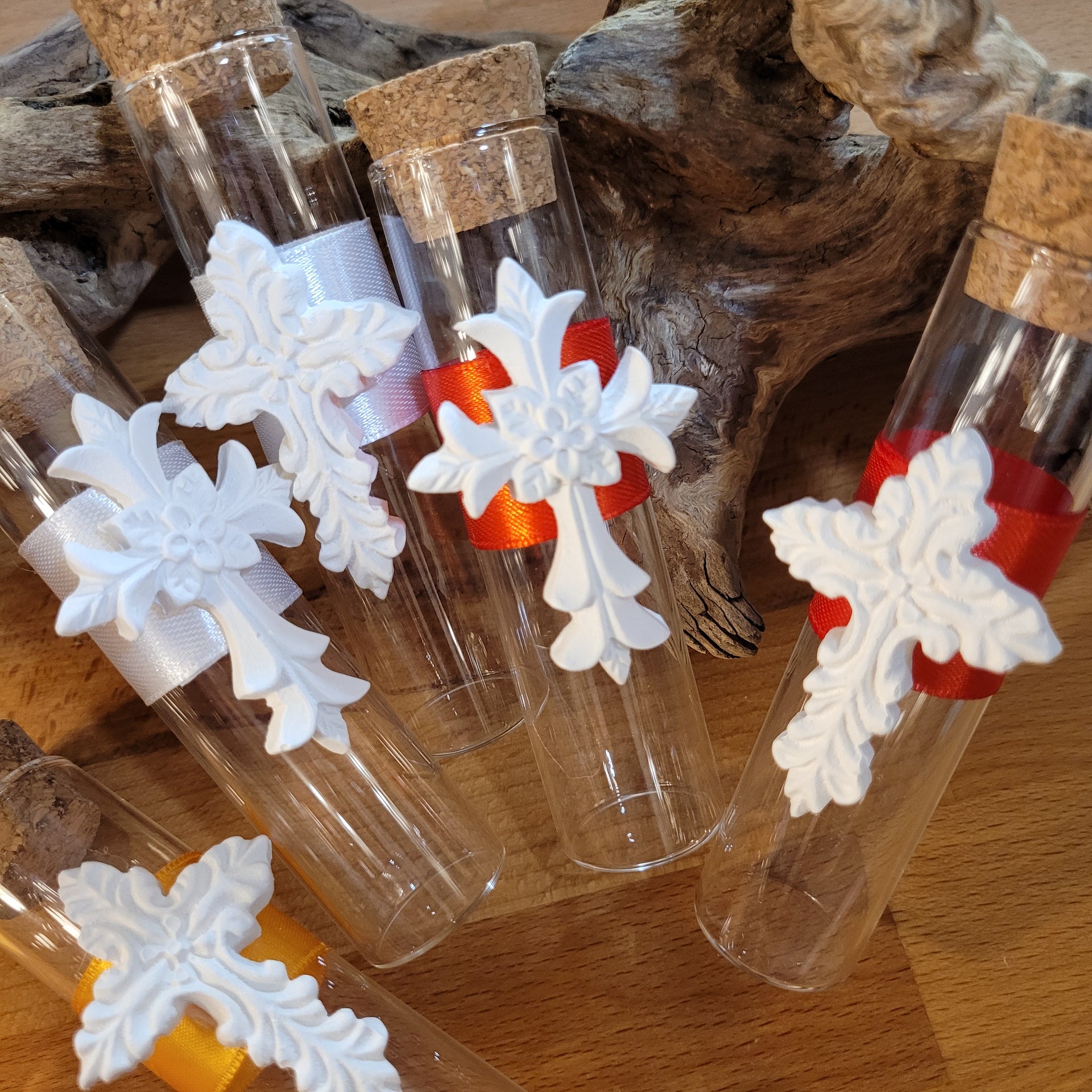 Provetta in vetro bomboniera Battesimo Comunione Cresima con croce in gesso