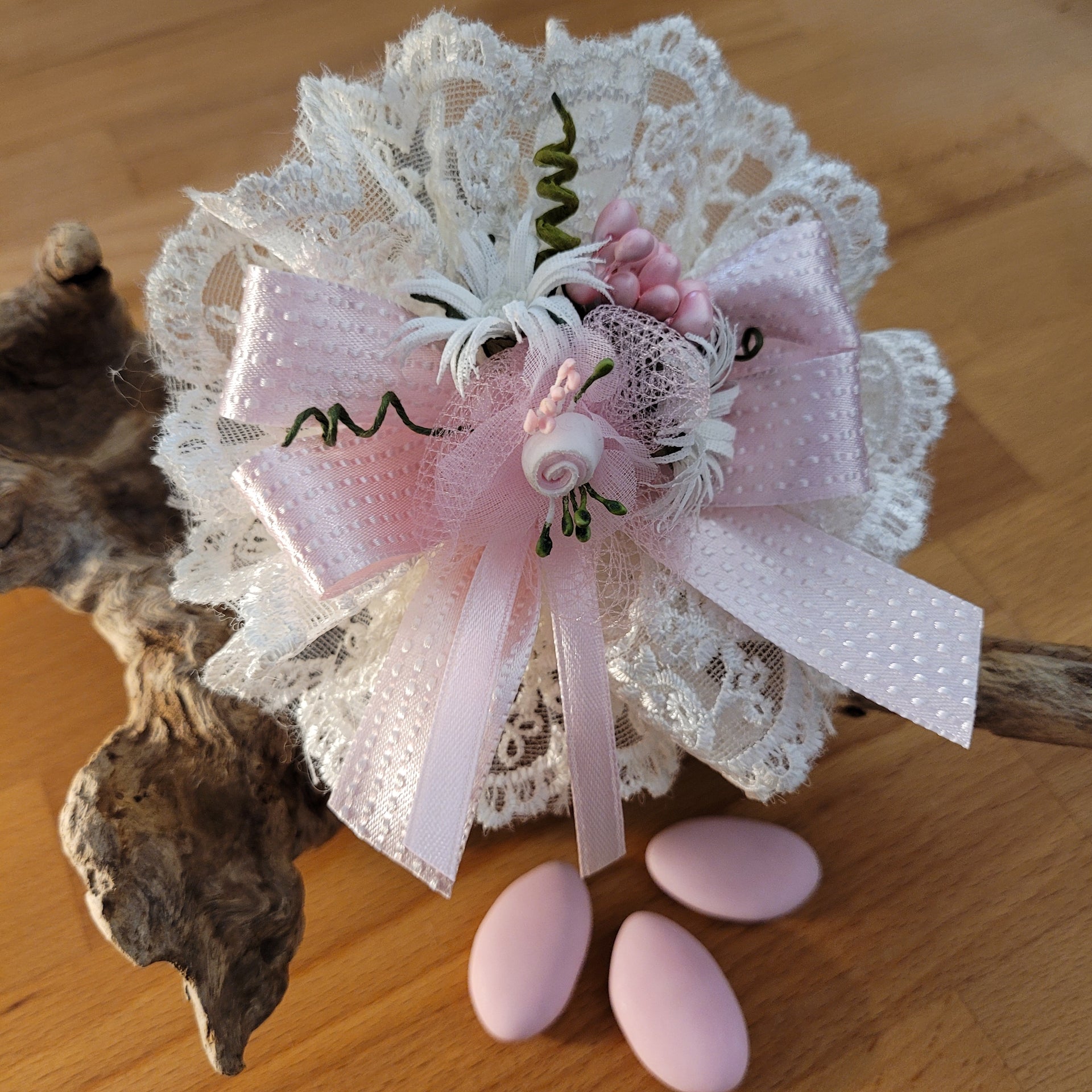 Sacchetto porta confetti in pizzo, bomboniera per bambina