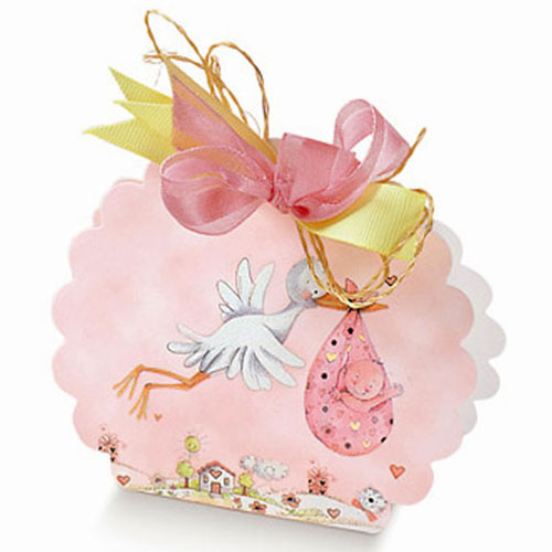 Scatolina portaconfetti cicogna rosa per nascita e battesimo bambina