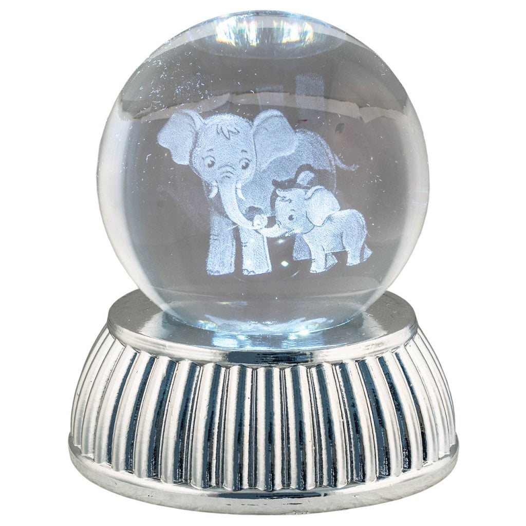 Sfera in cristallo con coppia di Elefantini, base argento e LED