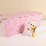 Gattina bianca e rosa con fiocco dorato, in resina.