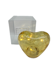 In vetro di colore giallo, il cuore contiene un filo luminoso di luci calde a LED.