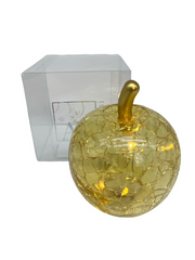 In vetro di colore gialla, la mela contiene un filo luminoso di luci calde a LED.