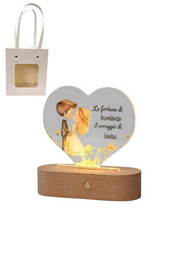 Ogni Sogno di Luce nasce dall’incontro tra il calore del legno naturale e la trasparenza del plexiglas, dando vita a lampade LED dalle forme delicate e dai messaggi unici, pensate per raccontare una storia e illuminare il cuore.