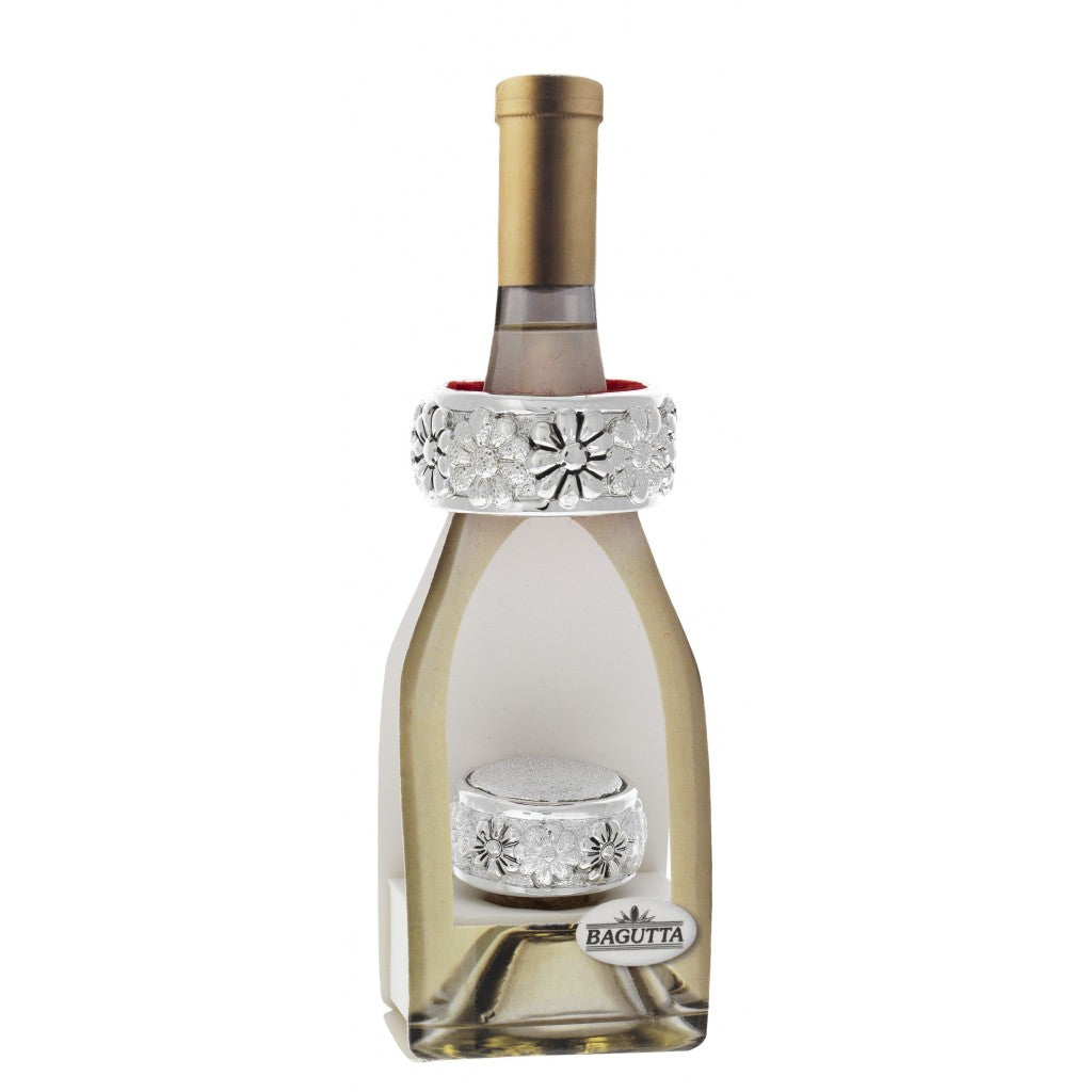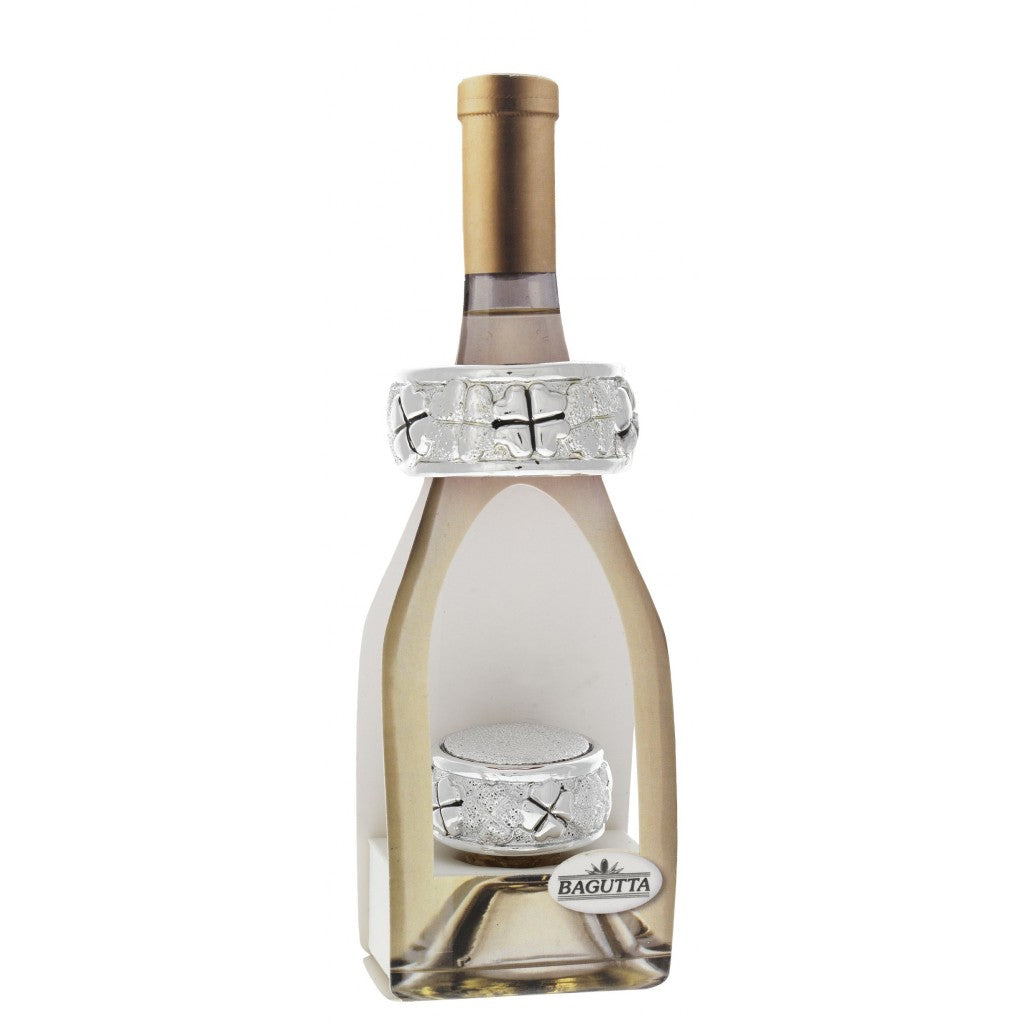 Bomboniera utile ed originale, ideale per matrimonio ed anniversario : Tappo e Salvagoccia in resina argentata, finemente lavorato con 5 differenti decorazioni : cuori, quadrifogli, uva, margherite e stilizzato.
