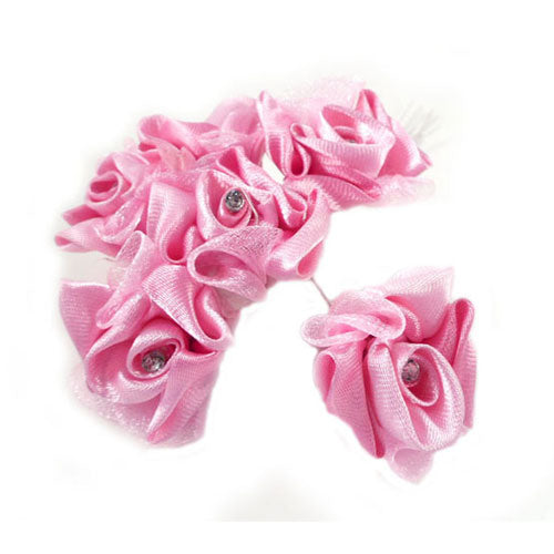 Fiore raso e organza con strass avorio rosa azzurro, 48 pz