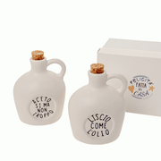 Set olio-aceto in porcellana bianca e scritta a tema.
