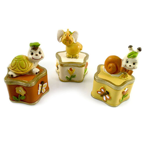 Bomboniera porta confetti scatolina in resina decorata a mano a forma di stella con animaletto, fornito in 3 modelli assortiti.