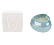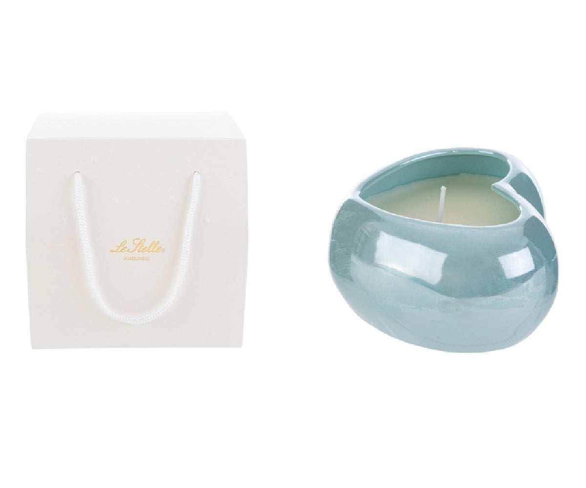 Cuore in elegante porcellana azzurra, contenente una candela naturale di soia.