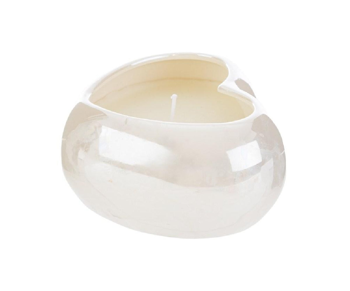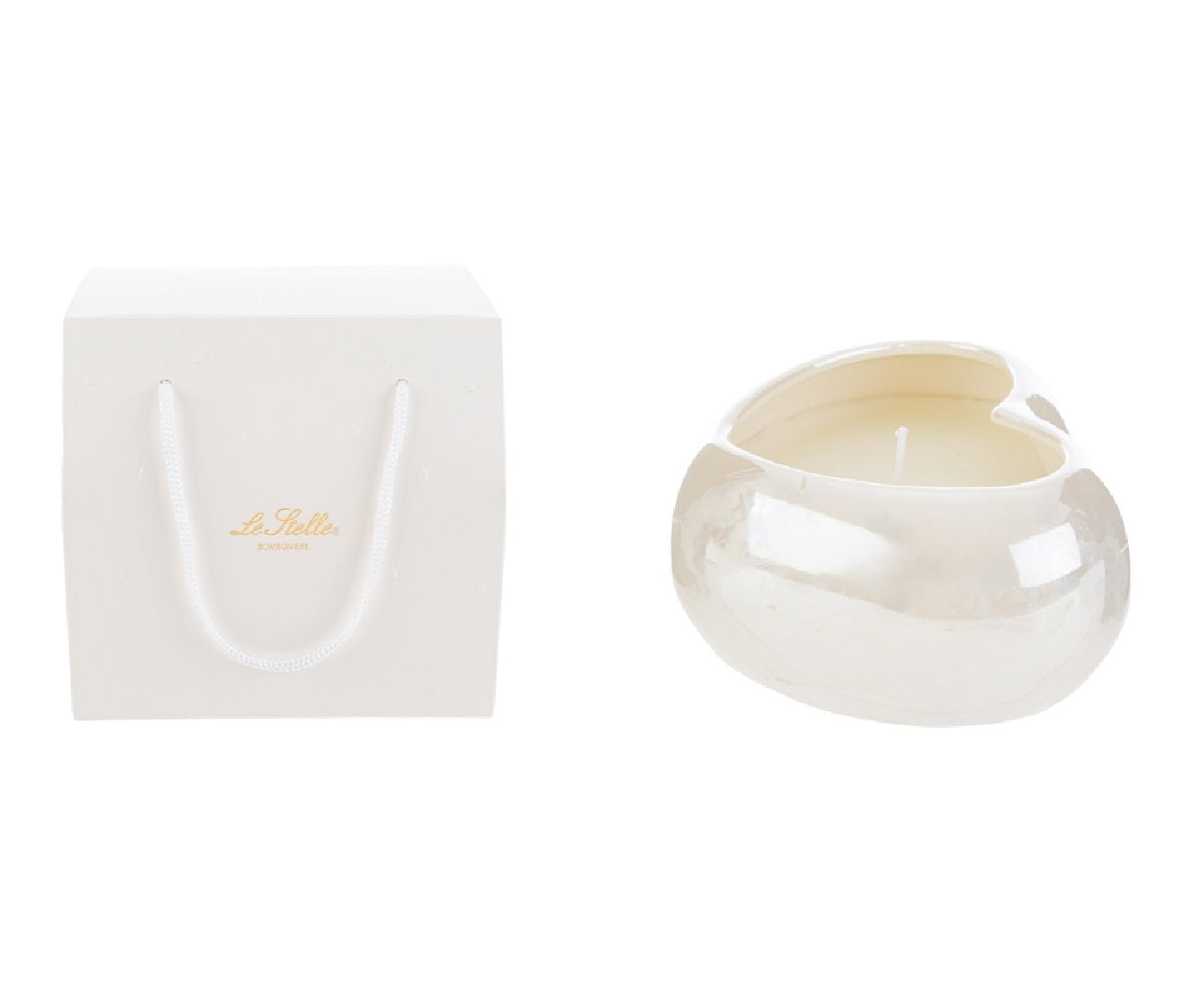 Cuore in elegante porcellana bianca, contenente una candela naturale di soia.