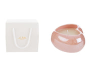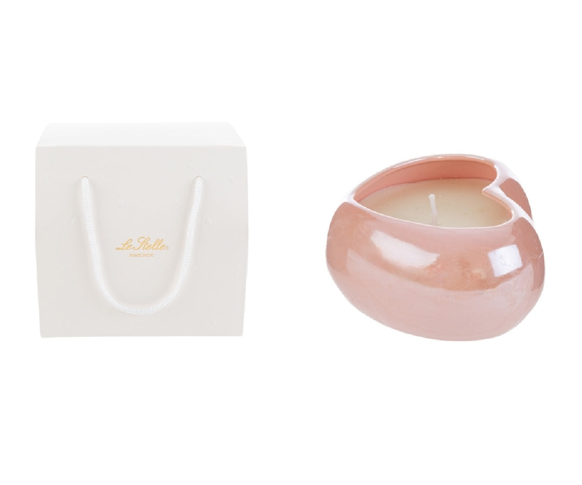 Cuore in elegante porcellana rosa, contenente una candela naturale di soia.