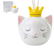 Profumatore gattina in porcellana rosa e bianca, con essenza e bastoncini.