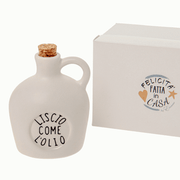 Oliera in porcellana bianca e scritta a tema.