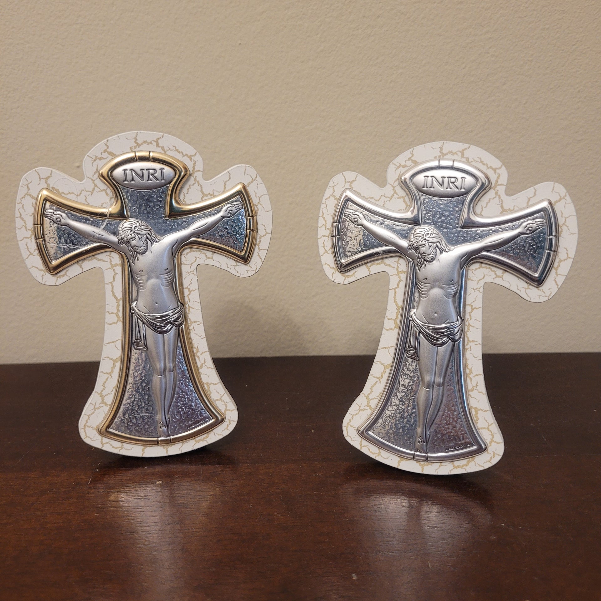 Disponibile tutto argento oppure argento/oro, con retro in resina effetto pietra.