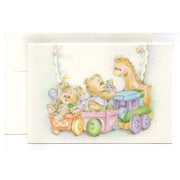 Disegno : orsacchiotti e giraffa con trenino. Colori pastello ideali per maschietto e femminuccia.