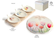 Stupende bomboniere in porcellana collezione " Le Mandorle", decorate con un delicatissimo disegno di tulipani.