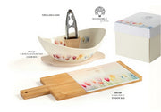 - tagliere in porcellana e legno. Misura cm 40,4 x 15 x 1,3 (scatola trasparente)