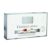 Confetti Buratti con le pregiatissime mandorle d'Avola, ricoperti da un sottile strato di zucchero di colore bianco .