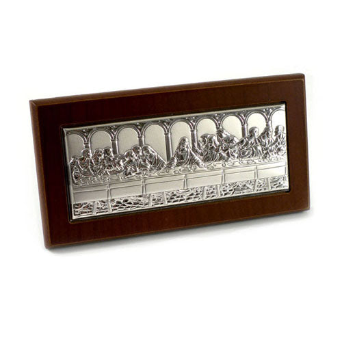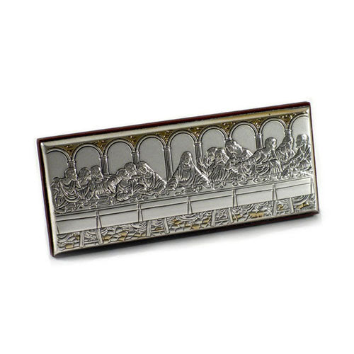 Pannello in legno e argento raffigurante Ultima Cena di Leonardo Da Vinci